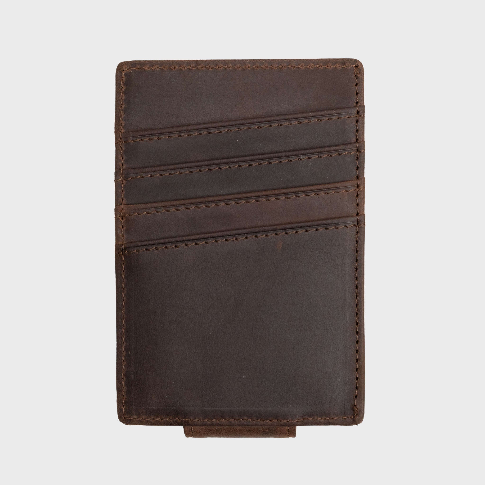 Rugged and refined—this dark brown vintage crazy horse full-grain leather slim wallet features a secure magnetic money clip for clean, confident carry. Built to age beautifully, it delivers classic character in a modern, minimalist profile.