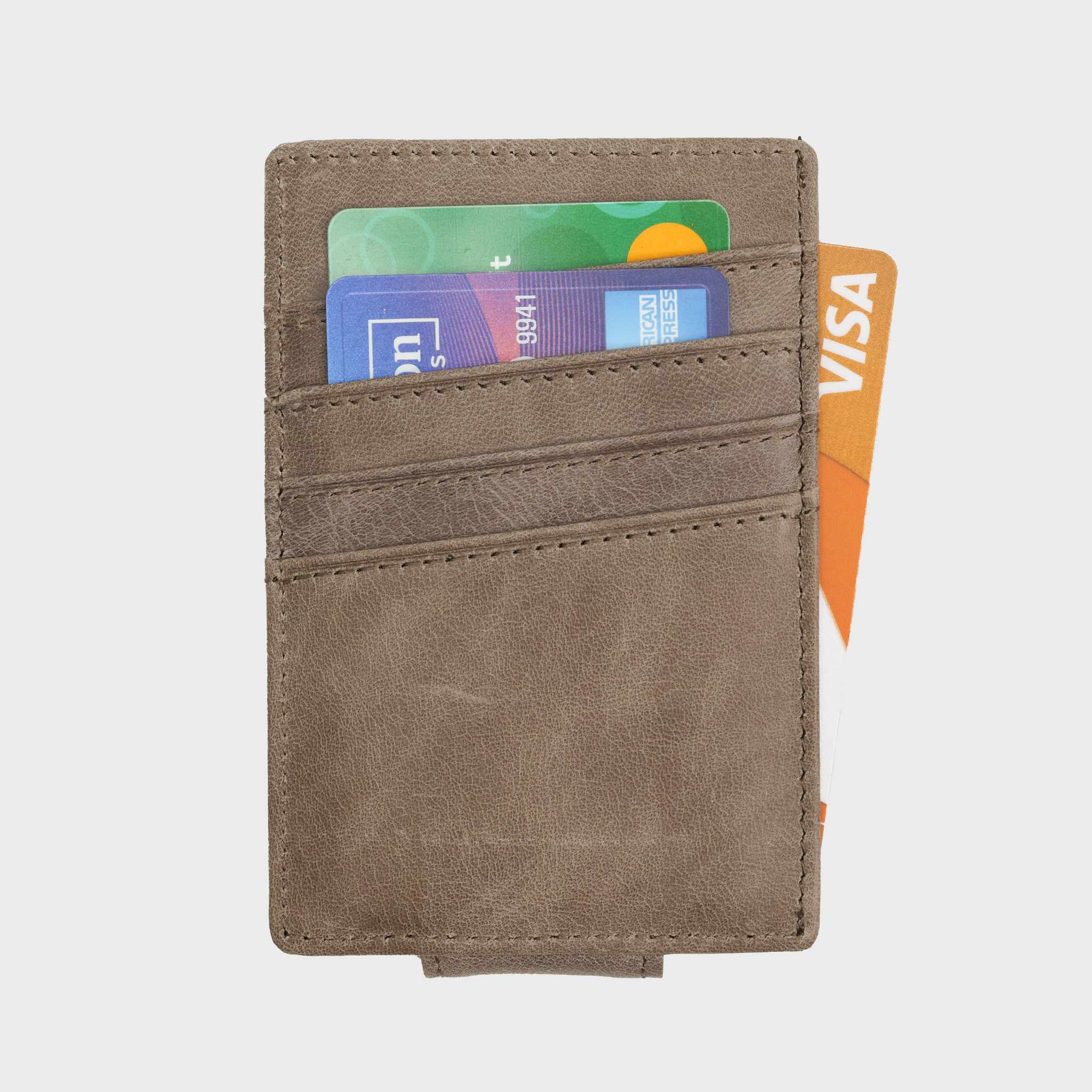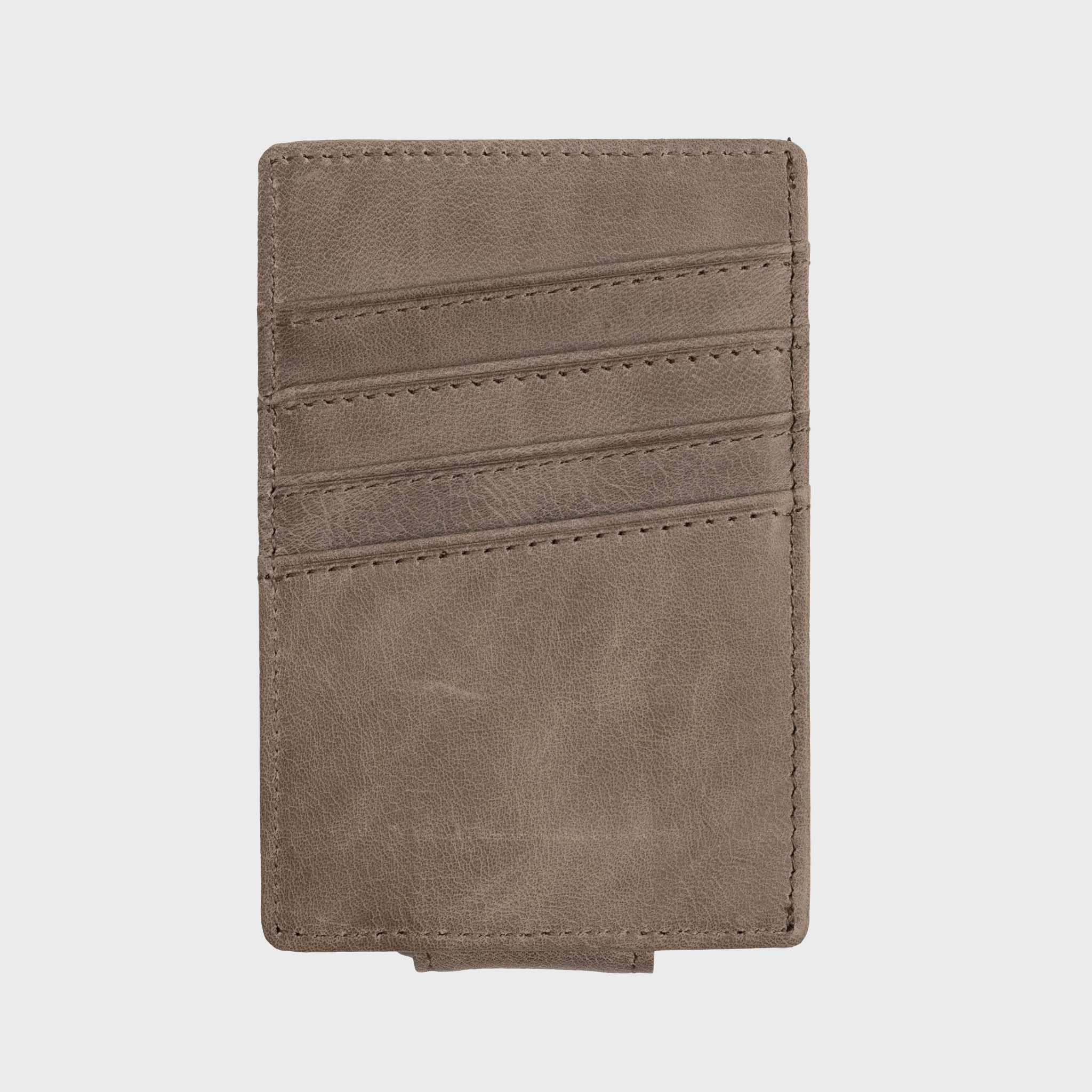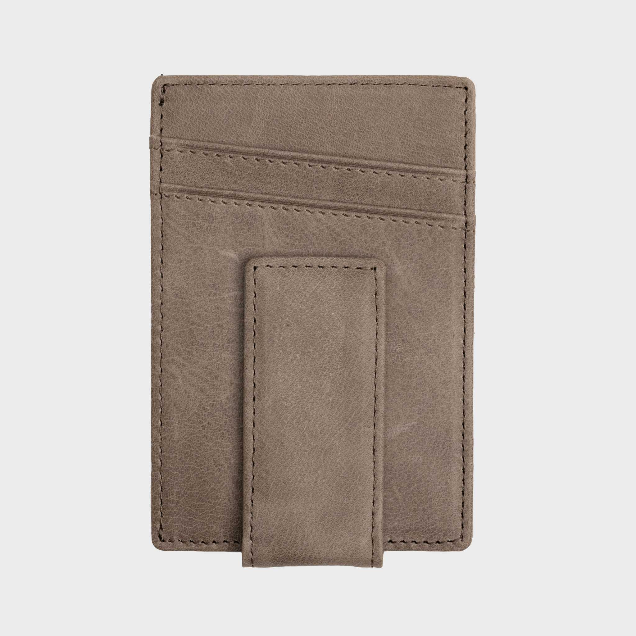 Modern and versatile—this gray full-grain leather slim wallet pairs a refined look with a strong magnetic money clip for easy access. Designed for minimalist carry, it’s perfect for men who want subtle style with everyday practicality.